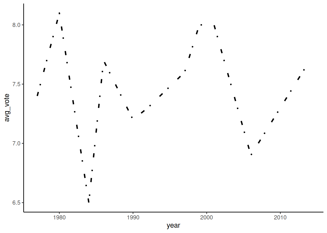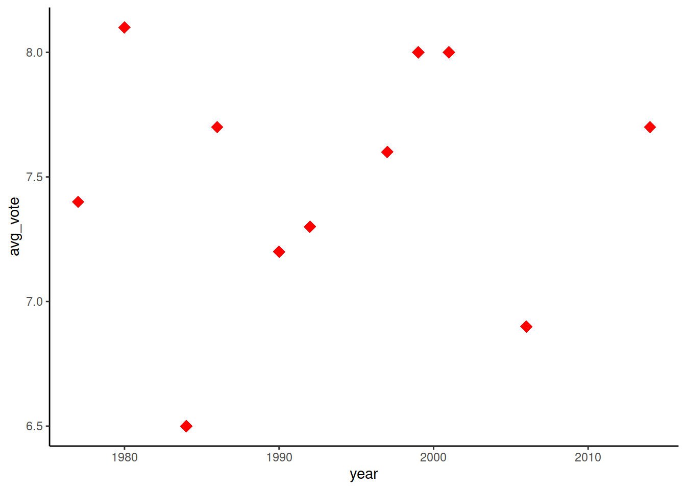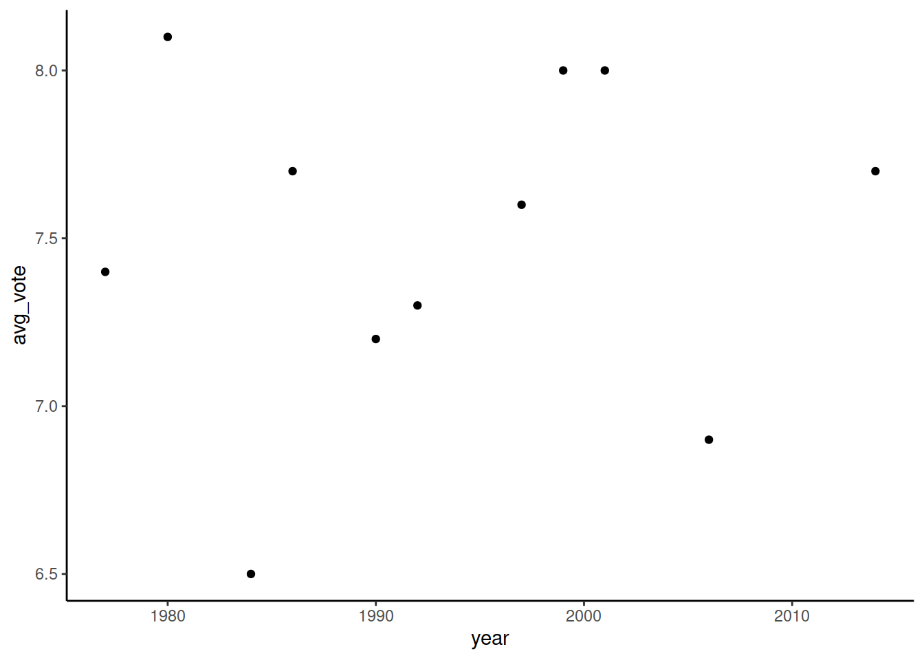 mapping = aes(x = year, y = avg_vote),